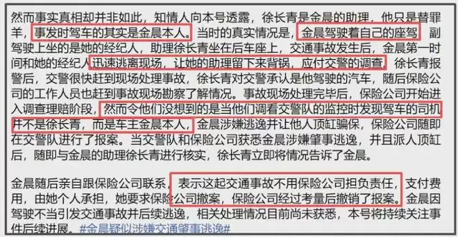 金晨涉嫌肇事逃逸找助理顶包风波有了新进展,官媒发声了。
