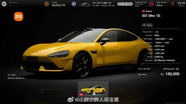 作为GT系列27年历史中首款正式收录的中国品牌车型,SU7 Ultra的加入具有特殊意义。游戏开发团队运用高精度扫描技术,完整还原了量产版车型的空气动力学套件、碳纤维装饰以及专属轮毂设计,车身光影效果与现实车辆几乎难以分辨。小米汽车最新社交媒体特别强调:“从反光涂层到刹车卡钳细节,每个部件都经过反复调校,确保玩家获得极致沉浸体验。”