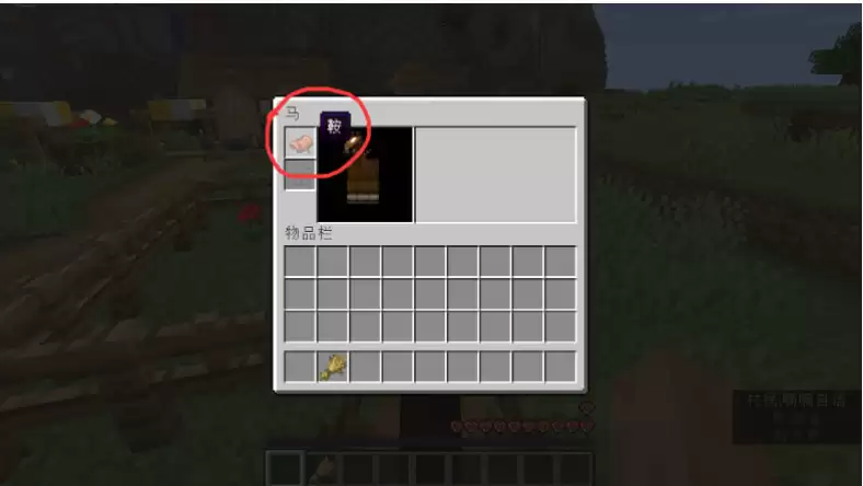 3. 成功骑上马背后,按下“E”键打开物品栏,将马鞍拖拽到马匹装备栏中即可完成装备。