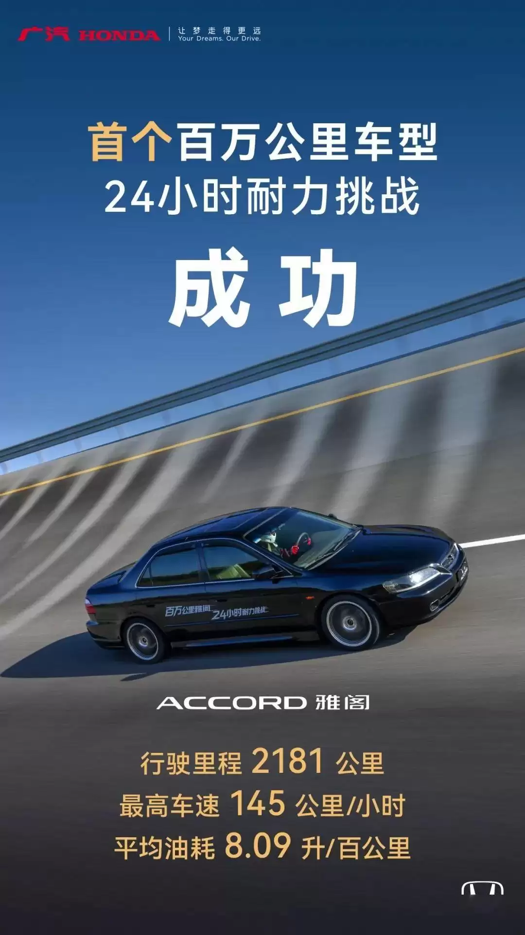 广汽本田六代雅阁完成24小时百万公里耐力挑战