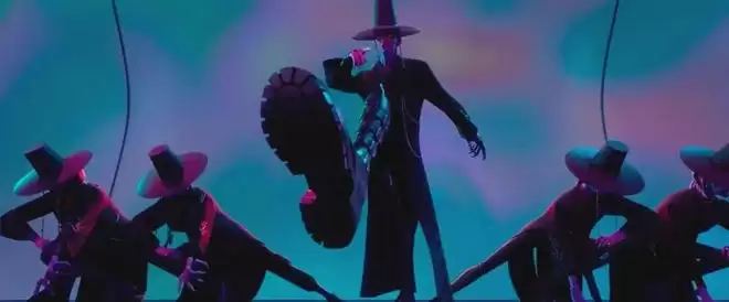 正因如此,《K-POP:猎魔女团》里那个时时关注榜单成绩,心系粉丝忠诚度的焦虑经纪人形象也就不言自明了。这样疯狂的粉丝文化也滋生了阴暗面,Huntr/x关系破裂后,Saja Boys趁火打劫吸纳了一批被低沉情绪唤醒心底罪恶的粉丝,他们如傀儡一般乌泱泱聚集在Saja Boys膝下,听成员表演黑化版的《Your Idol》。歌词里唱着“沉醉于我的光芒,你无法移开视线,难道不知是我来拯救你”,或许也能激发部分现实中饱受生活之苦压抑的粉丝共鸣。