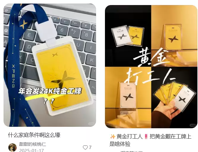 值得注意的是,这并非小鹏汽车首次发放黄金工牌。早在去年年初的2025年年会上,小鹏汽车就曾为表现突出的员工颁发黄金工牌,以资奖励。