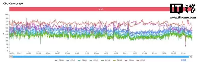 即使是面对《崩坏:星穹铁道》这类公认的性能质检员,Turbo 5 Max 依然能在 30 分钟的重载测试中维持高频运行,全程未出现明显的降频或波动,调度策略相当激进。