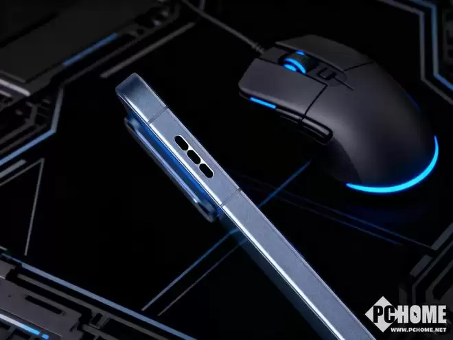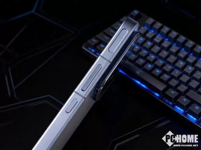 中框采用金属材质,表面经过喷砂氧化处理,防滑且不易沾染指纹。机身一侧设有明显的出风口,内置主动式散热风扇。另一侧则配备了两个触控式肩键,提供更便捷的游戏操控方式。