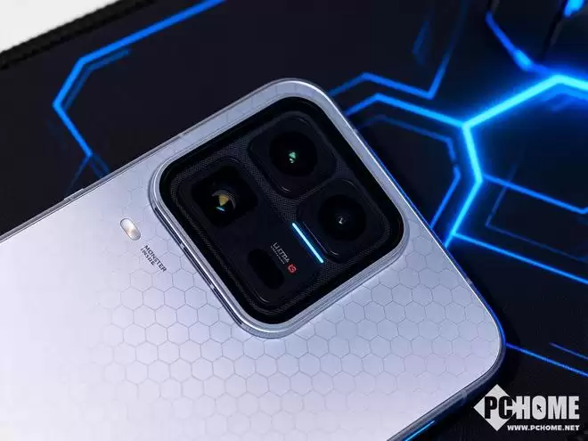机身背部的镜头模组Deco与屏幕R角弧度一致,视觉风格浑然一体。三颗后置摄像头以几何感极强的模块化布局排列,并醒目地标注了Ultra标识,整个区域充满科技秩序之美。镜头之间还特别嵌入了名为“能量光刃”的呼吸灯,它不仅能在游戏中提供专属光效,更能与各类外设联动,带来更沉浸的游戏体验。