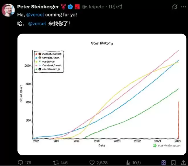 ▲Moltbot GitHub星标数量变化(图源:X平台)
