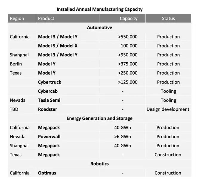 从财报公布的工厂产能来看,目前加州和上海两个储能工厂满产可以贡献 80GWh 的年产能。这也意味着在当下 AI 需求依旧强劲的情况下,特斯拉的能源业务在 2026 年大概率还可以继续延续高速的增长。