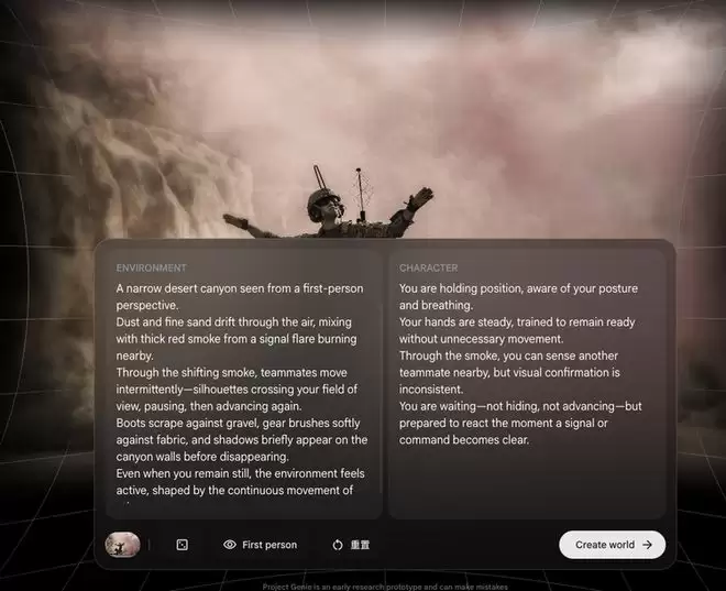 也正因为如此,Project Genie 看起来既不像一个完整的游戏,也不像一个视频工具。它更像一个尚不成熟、但已经能够自洽运转的系统原型。