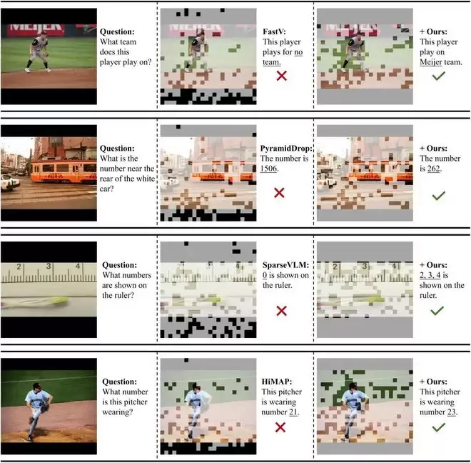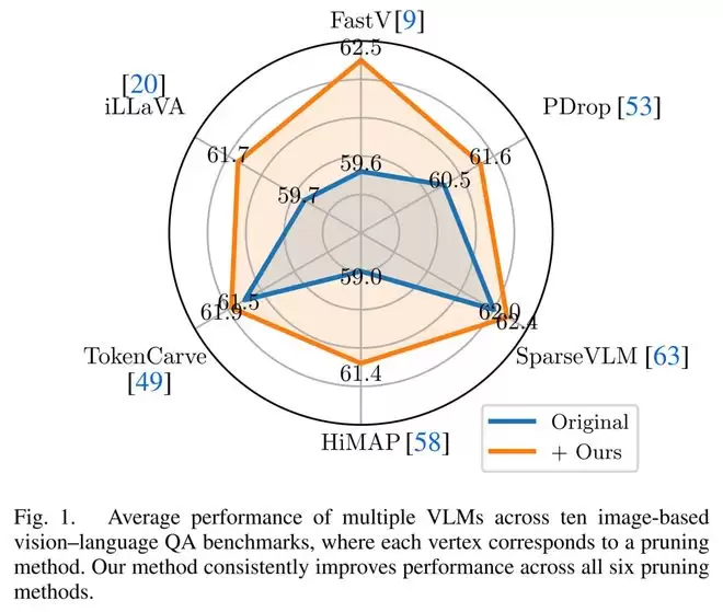 在实验验证中,该团队将Attention Debiasing方法集成到FastV、PyramidDrop、SparseVLM、HiMAP、TokenCarve、iLLaVA等6种主流attention-based剪枝方法中,在10个图像理解基准与3个视频理解基准上进行了系统评估,并覆盖LLaVA-7B / 13B等多种主流Vision-Language Models