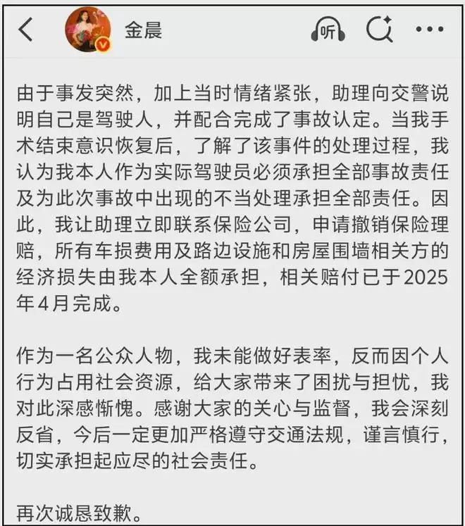先放上金晨道歉原文,大致可以分为两个部分。