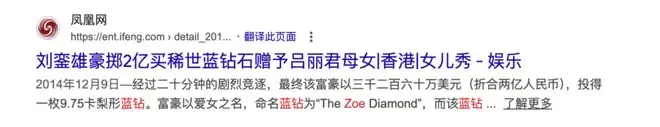 大刘对女儿(或者是任何他喜欢的人)的疼爱,从来不走温情路线。对跟过他的女人,他喜欢送包送房子,而对女儿们则是直接买下拍卖行的命名权。这是国际珠宝界极高的荣誉,因为这些钻石的名字,在交易成功后会被载入苏富比、佳士得的永久档案。