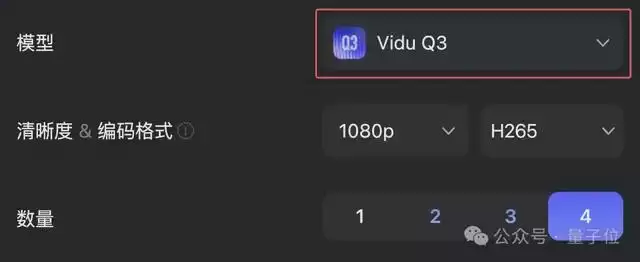 首先在操作上,我们在图生视频页面中,需要先选择“Vidu Q3”这个模型,可以一口气出1-4个视频。