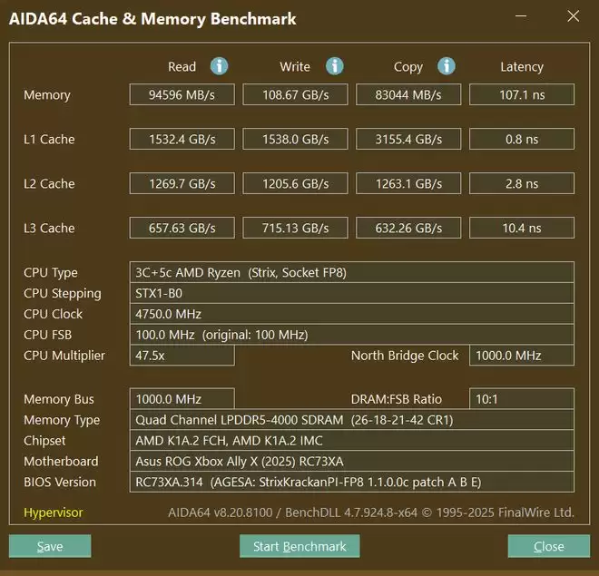 内存方面,这次标配24GB LPDDR5X 8000MT/s内存。通过AIDA64的跑分结果来看,读取速度极快,延迟控制在110ns左右。给核显划分显存的时候那叫一个豪横,直接划8G甚至12G都不心疼,有效缓解了以前爆显存导致掉帧的问题