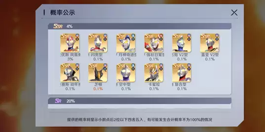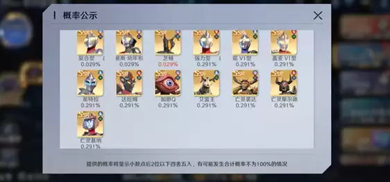 迪迦、奈克瑟斯与芝顿仅能通过概率抽取获得