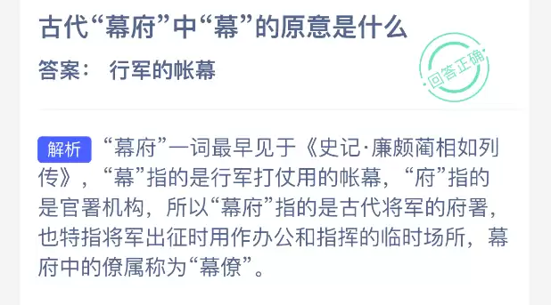 幕府中“幕”字本义为何?2026年支付答案详解