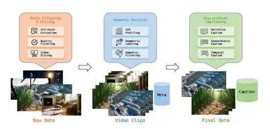 数据主要来自于真实世界视频、游戏视频以及利用虚幻引擎制作的合成渲染数据。再利用一套标注流程,将数据转化成可训练的资产。