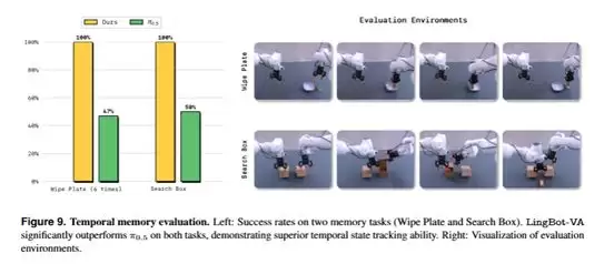 在计数和寻物两项记忆任务中,LingBot-VA都拿下了满分的成绩。