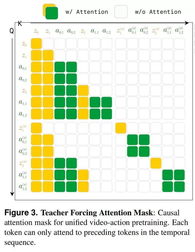 此外,LingBot-VA还会给模型加入注意力掩码机制,从而保证这套系统的预测是真的由自回归系统的预测得出的,而不是模型自己生成的。
