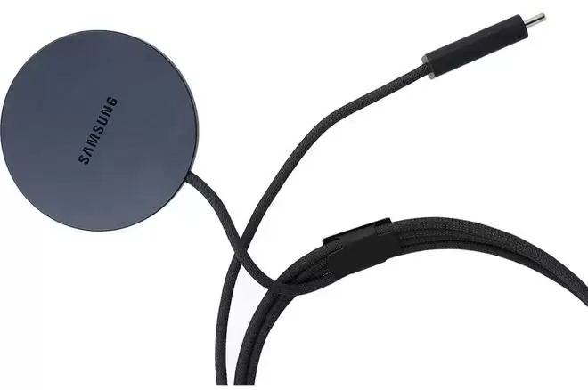 从外观来看,这款无线充电器的本体是一个黑色的圆形充电盘,它通过一根编织线缆进行连接。线缆的另一端配备了 USB Type-C 接口。相比传统橡胶线材,这种编织线缆的设计通常更加经久耐用,也不易缠绕打结。相关图片细节如下: