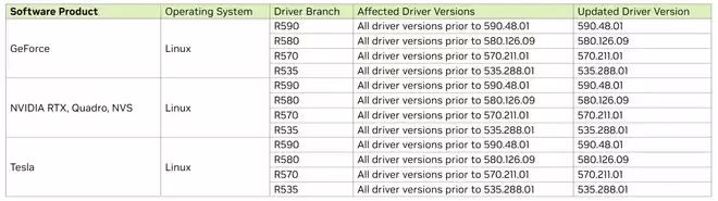 具体而言,R590分支用户需更新至591.59或更高版本,R580分支需更新至582.16,R570分支需更新至573.96,而R535分支则需更新至539.64。只要当前驱动版本低于上述数值,设备便处于风险之中。