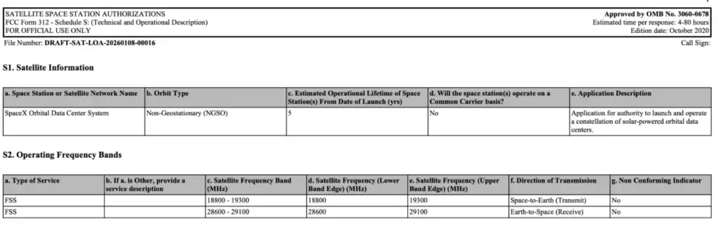当地时间周五,SpaceX向美国联邦通信委员会(FCC)提交了一份最新申请文件。文件内容显示,该公司正规划一个被称为“轨道数据中心系统”的卫星网络,计划发射并运营一个由多达100万颗卫星组成的星座。这些卫星将运行在500公里到2000公里的不同轨道壳层中。