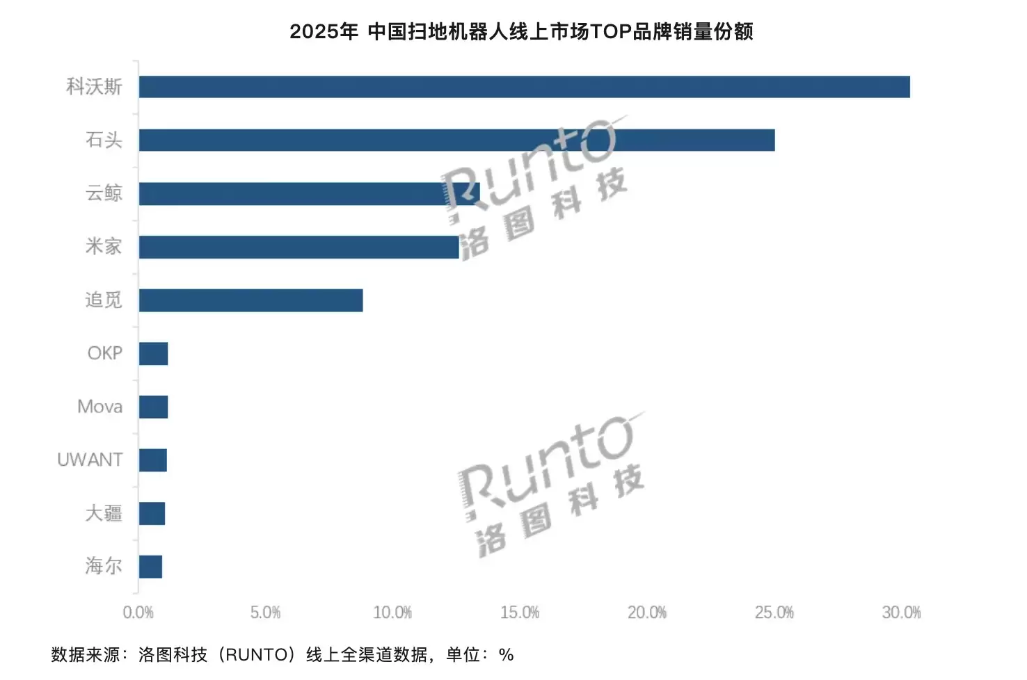 2025年,中国扫地机器人线上市场的品牌集中度进一步提升。全年销量排名前五的品牌合计份额高达90.3%,较2024年增长了3.9个百分点。市场资源正加速向头部品牌集中,中小品牌的生存空间受到显著挤压。