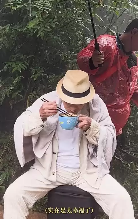 没等网友消化完这份 “接地气”,画面突然切到山里,他捧着个粗瓷碗蹲在石阶上嗦面,面条沾着酱汁挂在嘴角都没在意,还对着镜头晃了晃碗: