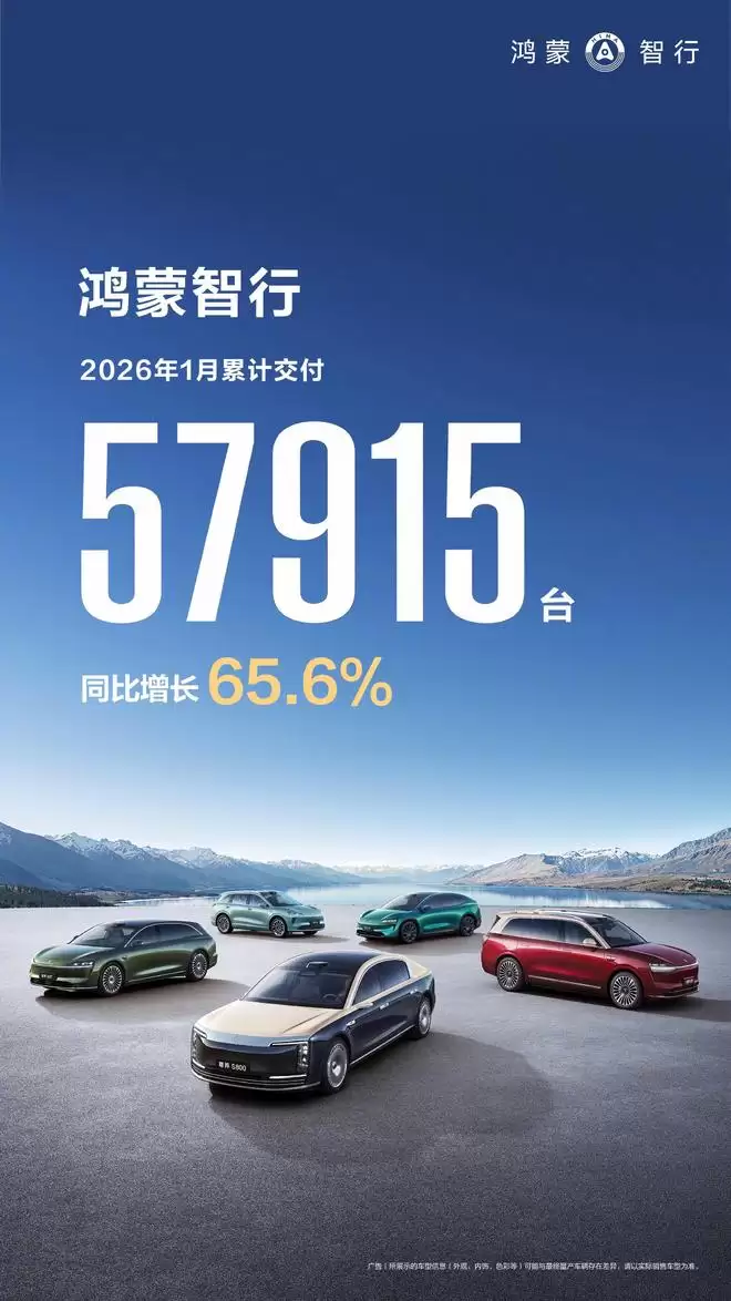 鸿蒙智行1月交付5.79万台,同比大增65.6%创纪录