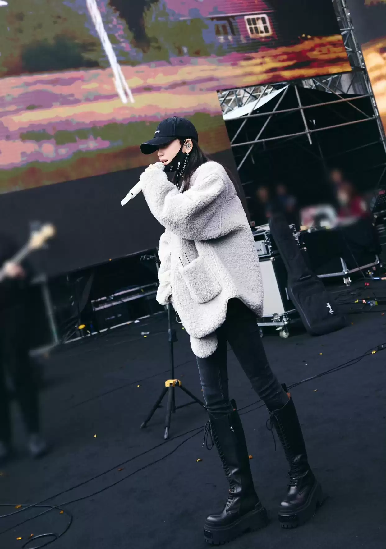 于文文身后是她的乐队成员,当时应该正在彩排。