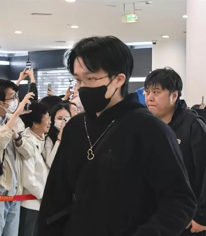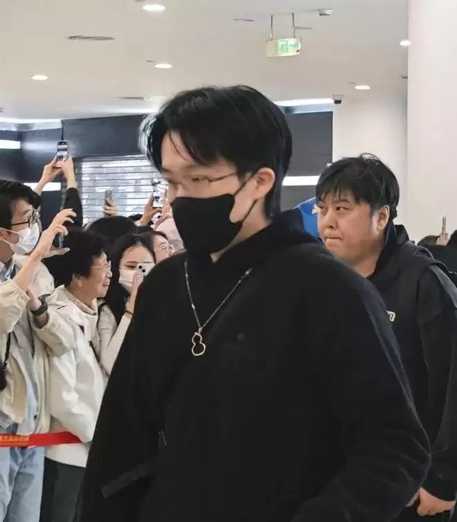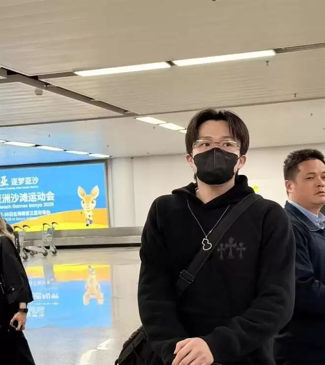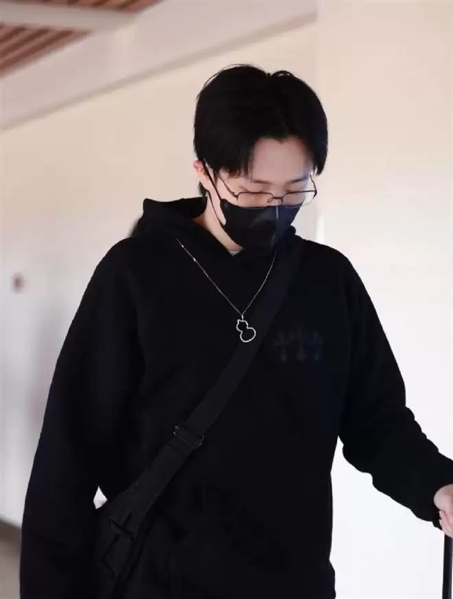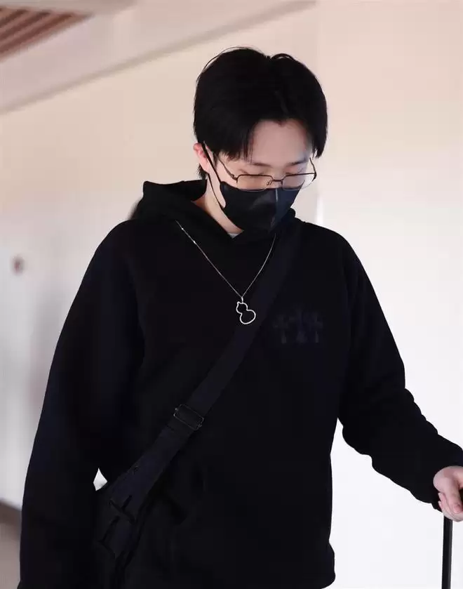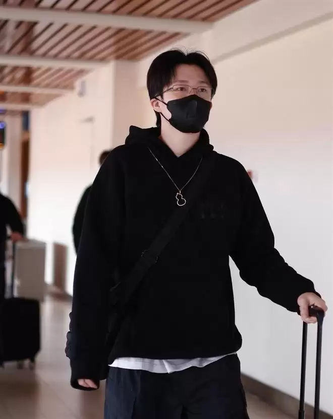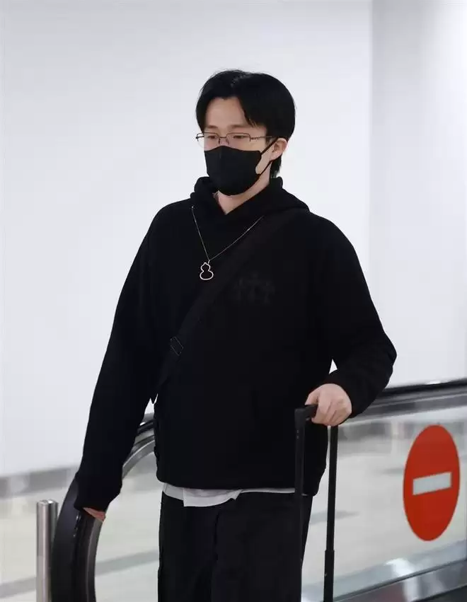 他穿了整套黑色运动装,线条干净利落,一副细边眼镜架在鼻梁上,那股子冷峻的文艺气息直接拉满。 最显眼的,还是他脖子上那条标志性的麒麟项链,在机场灯光下闪着细碎的光。