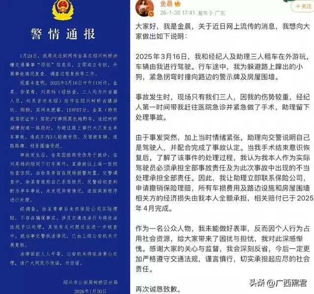 面对铺天盖地的质疑,金晨方面发布了道歉声明,对事件造成的不良社会影响表达歉意,而当地警方也发布了警情通报,澄清此次事件中不存在骗保行为,所谓的顶包行为只是金晨助理的个人误操作,并非主观故意的顶替。最新的澄清和当事人的致歉,本应让事件告一段落,可在娱记和狗仔看来,这份道歉声明和警情通报都存在诸多难以自圆其说的漏洞,根本无法解释事件中出现的诸多疑点。