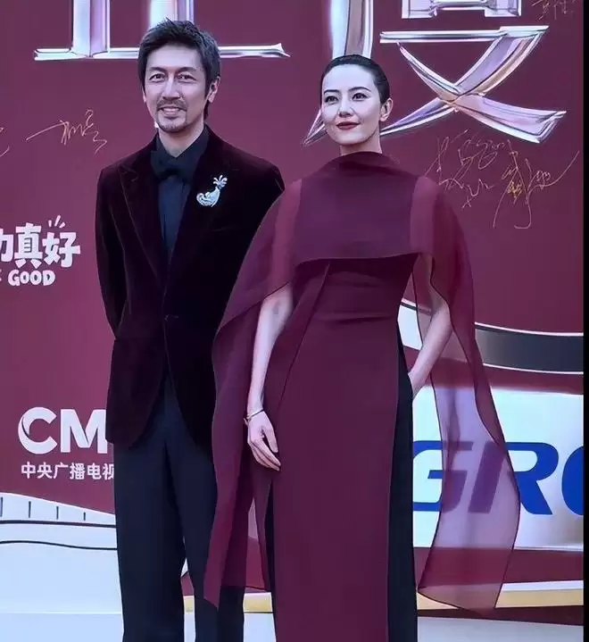 1 月 29 日的红毯上,高圆圆还是一袭酒红缎面长裙,拖地裙摆随着步伐轻轻晃动,像一团流动的火焰;