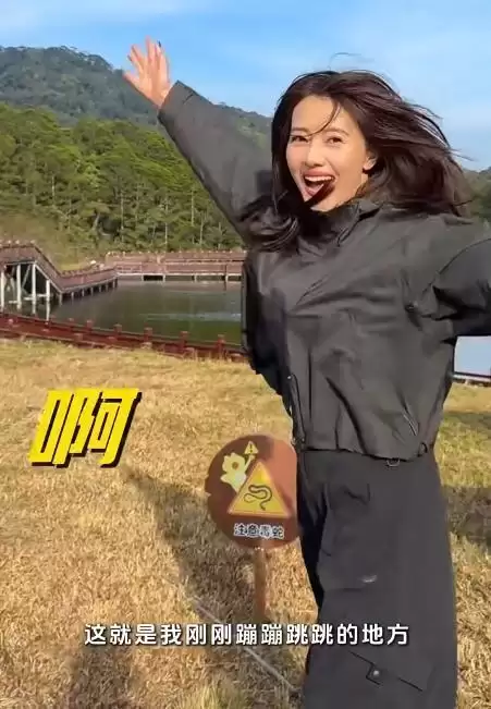 下车后短程徒步去瀑布时,她穿着运动鞋一步一步往上走,额角出汗了就用手背擦,还跟镜头互动 “你们看这最后一段冲刺路,运动量刚好,走下来浑身都松快了”。
