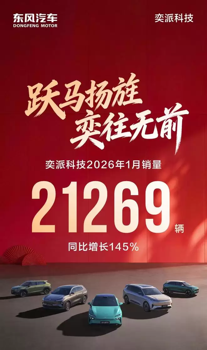网易汽车2月1日报道,东风汽车集团旗下羿派科技传来2026年开门红的好消息:1月终端销量达21,269辆,延续了自2025年成立以来的稳健增长势头。作为东风集团新能源战略的核心载体,羿派科技正通过双品牌协同运作、核心技术攻坚与深度用户运营,持续扩大其在主流市场的份额,展现出合资车企转型之路上的标杆实力。