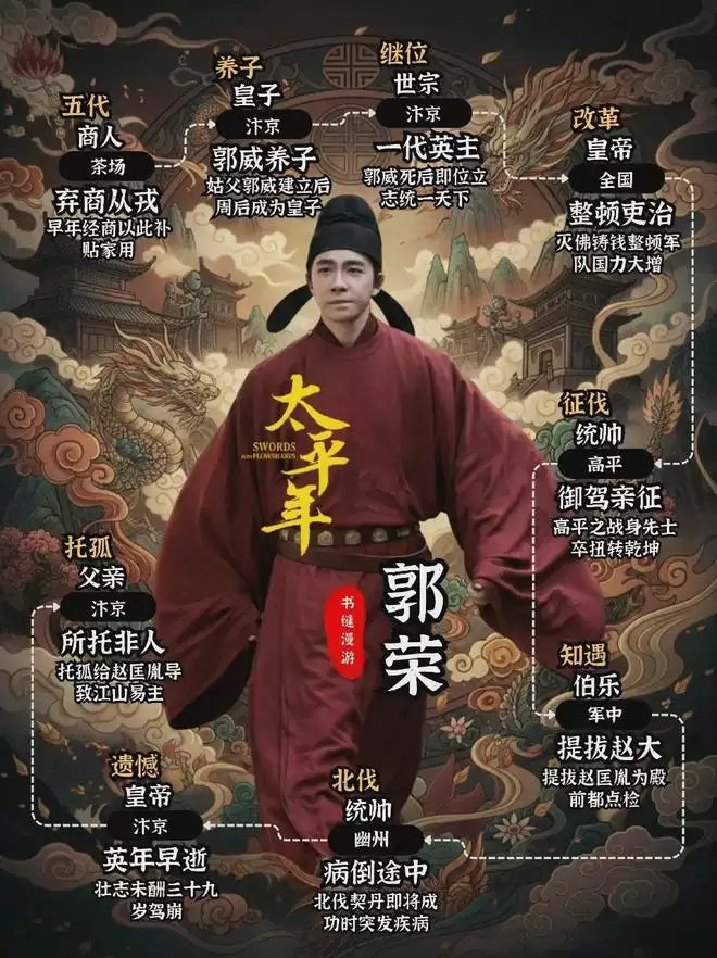 除此之外,郭威和郭荣之间深厚的感情,也是很重要的一个原因。郭威早年落魄的时候,郭荣的姑姑柴氏不顾世俗眼光嫁给了他,郭荣也一直陪在他身边,不离不弃,跟着他熬过了最艰难的日子。这种一起闯过生死的情谊,早就超越了普通的养父和养子,郭威把郭荣当成自己的亲儿子,自然愿意把自己辛辛苦苦打下的江山,托付给这个最信任、也最有能力的人。