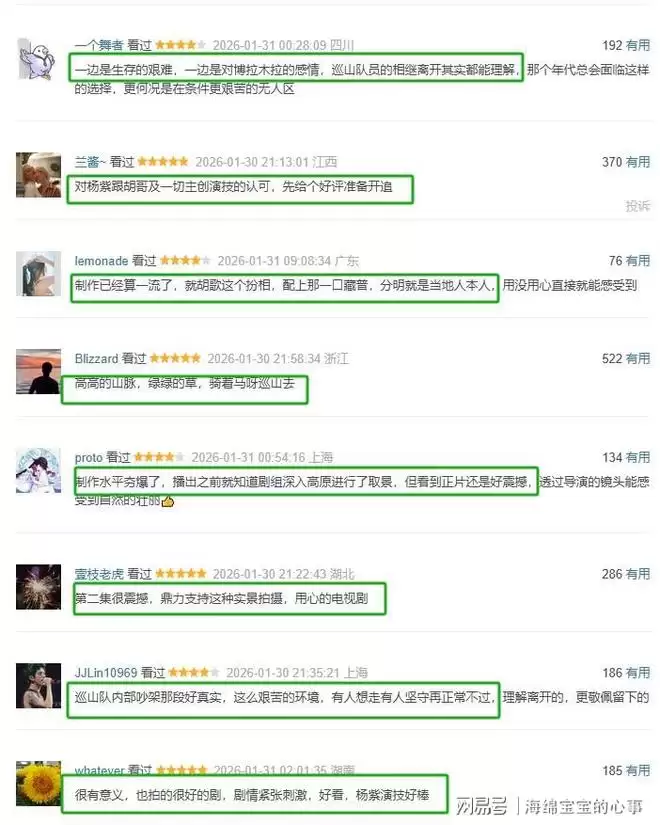 胡歌饰演的多杰则是红血丝严重,面容粗糙,也符合长期风吹日晒的巡山队长人设;
