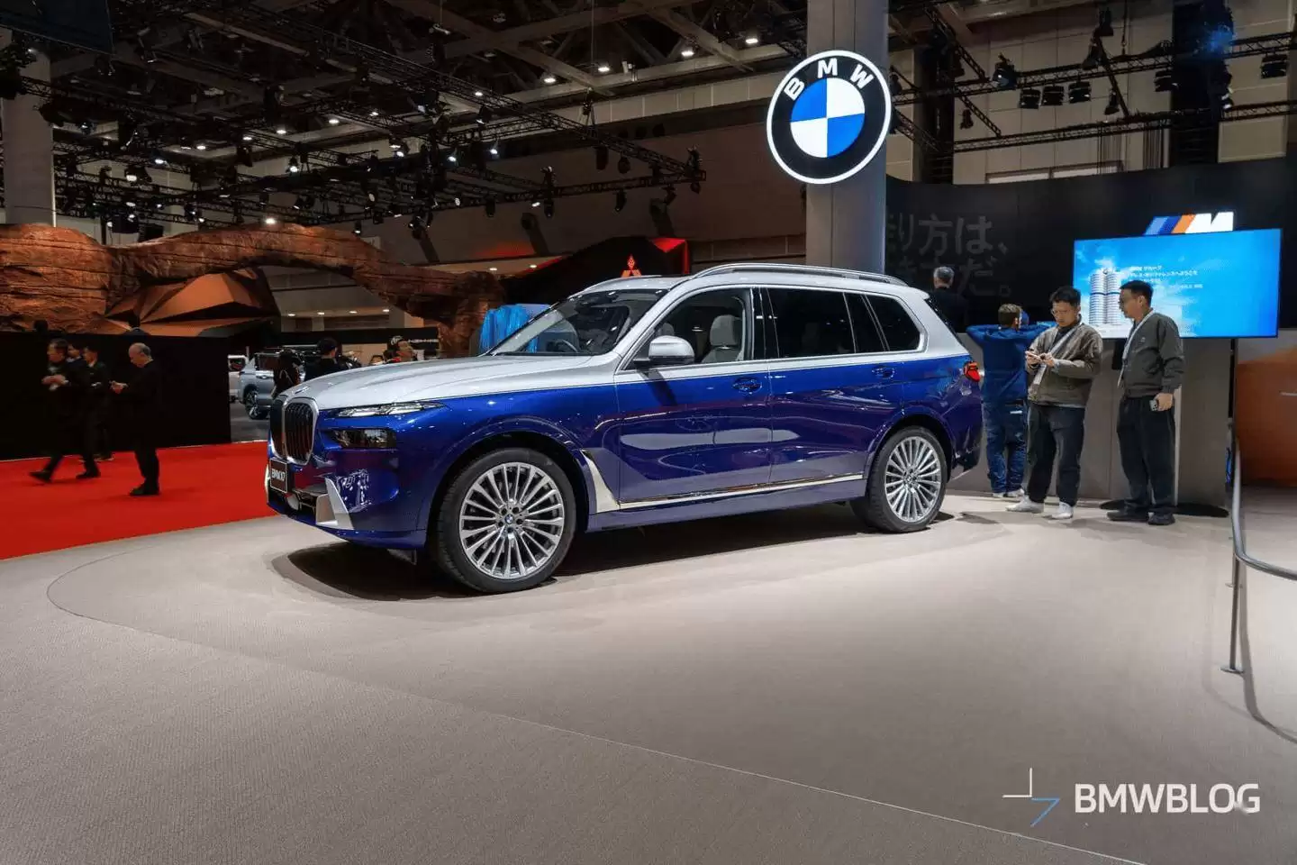 这项个性化服务允许买家自由组合车身色彩:上半部分提供岩石灰或宝石青两种经典色系,下半部分则可以从上百种定制车漆中精心挑选。宝马此前已通过非官方渠道展示过类似设计理念——一台运往日本的X7被重新喷涂为“太空银+天鹅绒蓝”双色方案,当地市场还提供“氧化灰+黑宝石蓝”的组合选项。两种颜色之间以精致饰条分隔,营造出堪比劳斯莱斯的奢华质感。