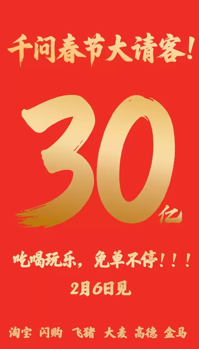 阿里千问春节AI大战:30亿请客吃喝玩乐,免单引爆热潮