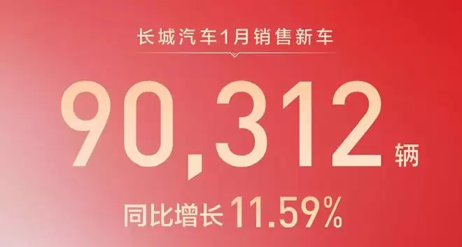 长城汽车1月份销量为90312辆,同比增长11.6%,环比下降27.2%。其中,新能源销量18029辆,细分到品牌上,哈弗销量50513辆,坦克销量14505辆,魏牌销量7873辆,欧拉销量2057辆。