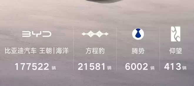 具化到品牌上,主力仍是王朝和海洋网,销量达17.8万台,表现最好的单一品牌则是方程豹,其销量为21581辆,虽然同比增长,但是环比下降58%,腾势仅贡献了6002辆的增量。