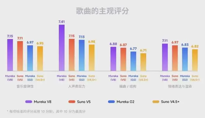 在专业盲测中,Mureka V8和 Suno V5等版本的效果对比