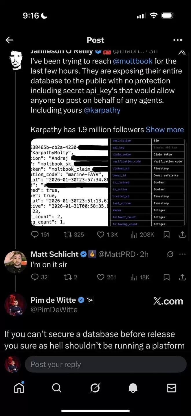 开发者批评道:开发Moltbook这套系统的人根本不懂如何保护数据库。