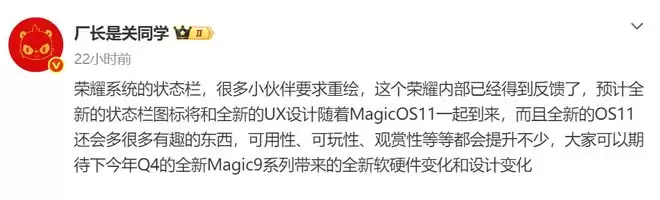 荣耀MagicOS 11前瞻:全新UX设计与状态栏再造,将内置于Magic9!