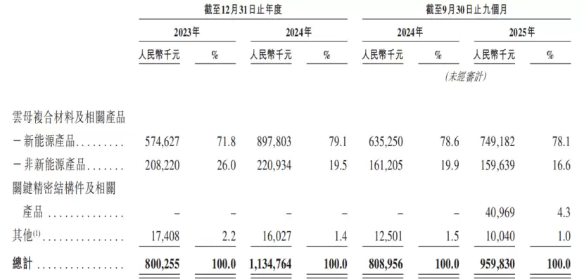2024年,公司约98.6%的收入来源于云母复合材料及相关产品。