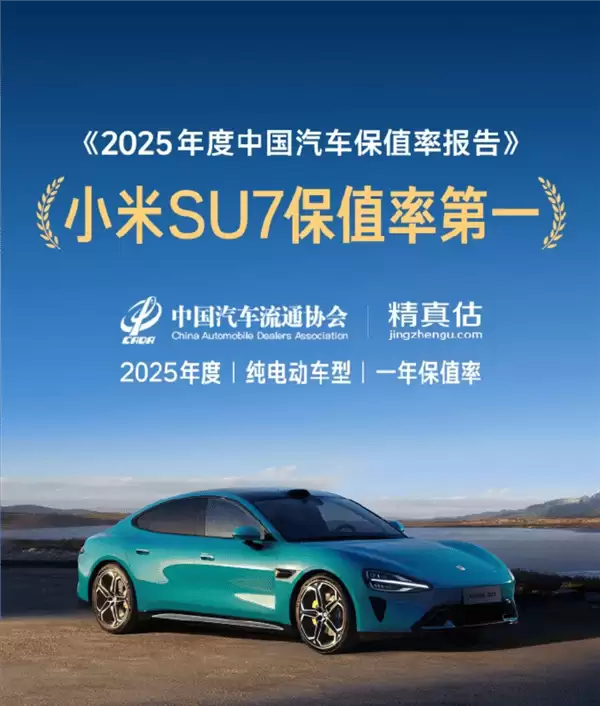 雷军援引中国汽车流通协会与精真估联合发布的《2025年度中国汽车保值率报告》数据称,小米SU7以86.05%的年度纯电车型一年保值率位居榜首,成为当前市场上保值能力最强的电动汽车。他对比同期竞品数据指出,保时捷Taycan与特斯拉Model S的保值率分别为80.66%和81.72%,均低于小米SU7的表现。