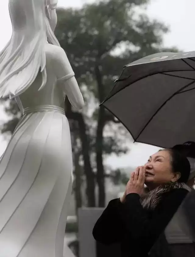 当天S家还举办了一个小型的悼念会,大S的亲朋好友到雕像前献花。小S满脸泪水抱着吴青峰痛哭,言承旭打着伞,抬头看着大S雕像,身影落寞。
