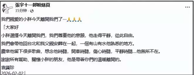 2月2日,57岁音乐制作人袁惟仁在家中病逝,家属悼文称将带他回台北与父亲合葬在一起。而后,众星纷纷用自己的方式悼念。
