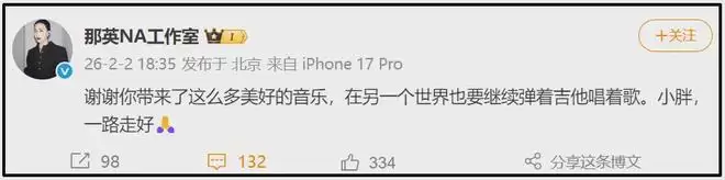 吉克隽逸则用袁惟仁写的词写“开了笑了散了”送别,下半句出自歌曲《生活在别处》,祝袁惟仁去向更自由的地方了。尚雯婕祝小胖老师一路走好,还表示那些纯粹的音乐都将永远记在心中,愿他在天堂尽情歌唱。