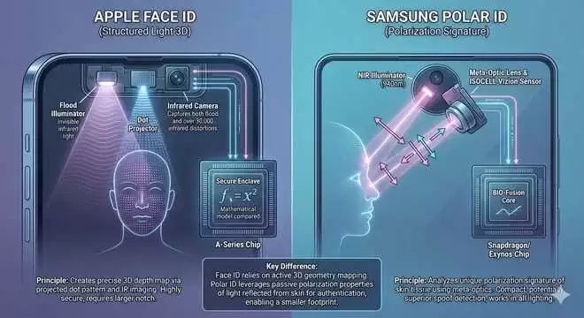 其工作原理是向用户面部发射红外光,随后通过超透镜对反射光的偏振状态进行过滤。专用传感器可同时捕捉面部信息和偏振数据,最后由手机的安全隔离区将识别到的偏振图与存储的参考数据进行比对,匹配成功即可解锁。
