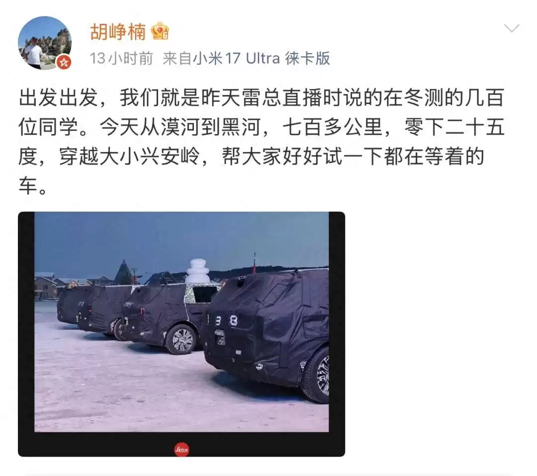 小米汽车高级顾问胡峥楠近日在社交平台分享了一张新车冬测照片,并配文称“带大家好好试一下都在等着的车”。从照片中可以看出,测试车辆尾部设计颇具风格,尾灯造型与此前曝光的版本存在差异,可能暗示该车型拥有多个版本或不同配置。与此同时,小米集团副总裁张剑慧也发布了一张测试车尾部照片,显示车辆已开启辅助驾驶小蓝灯,且小蓝灯与尾灯采用分体式设计,进一步揭示了新车在细节上的巧思。